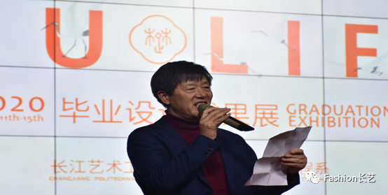 开幕式上,高职学院常务副院长金仁炎代表学院致辞,金院长首先代表学院对来的各位领导和老师表示欢迎,对辛苦付出的各位老师和同学们表示衷心感谢,金院长介绍了本届毕业作品展是以楚生活为主题展出的作品涵盖了数字媒体、室内设计、服装刺绣、工艺美术、戏曲表演等六个专业同学们的作品。是学院“学术自由,教学规范,原典创作,重在实践”的科学发展理念的物化,也是学院培养创新型艺术创作与艺术设计人才的实践成果的展示。这些毕业作品既体现出时代气息,又注重传统文化内涵,并融会了学生个人对艺术的解读,充分体现了毕业生艺术思维的敏感与活跃,展示了同学们对当代艺术的密切关注和对艺术理想的执着追求,充分反映了毕业生已掌握了较为扎实的基本功,为今后从事艺术创作做好了充分的准备。